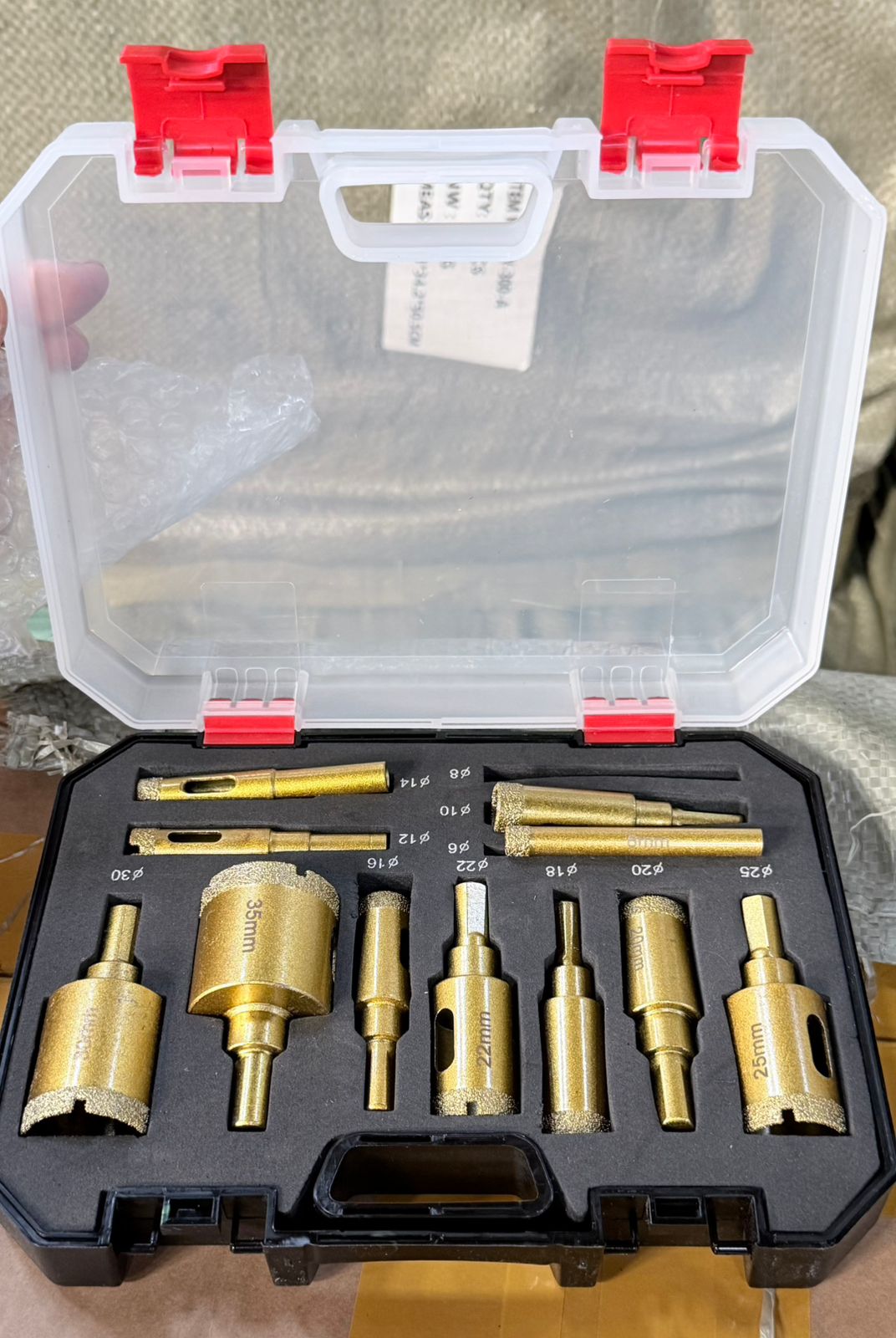 Este juego de brocas tipo sierra de copa es una herramienta esencial para perforar materiales duros con un acabado limpio y profesional. Diseñadas para perforaciones precisas en cerámica, porcelanato, mármol, granito y vidrio.