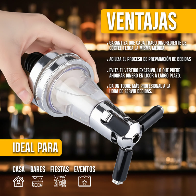 Dispensador de Licores Ajustable para cuatro botellas de diferentes licores, el dispensador viene determinado para brindar los tragos de una a media onza. cada botella aproximadamente de un litro.
