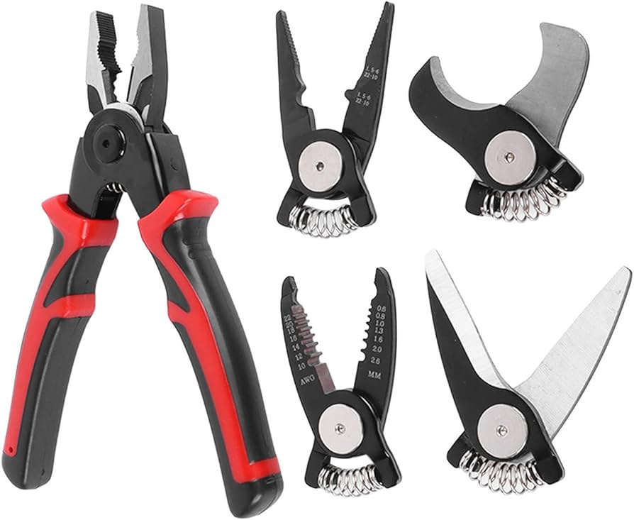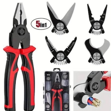 Optimiza tu trabajo y ahorra espacio con este innovador Juego de Alicates Multifunción de Cabezales Intercambiables. Ya no necesitas cargar cinco herramientas diferentes; este kit te permite cambiar de función en segundos con un solo mango ergonómico y ultra resistente.