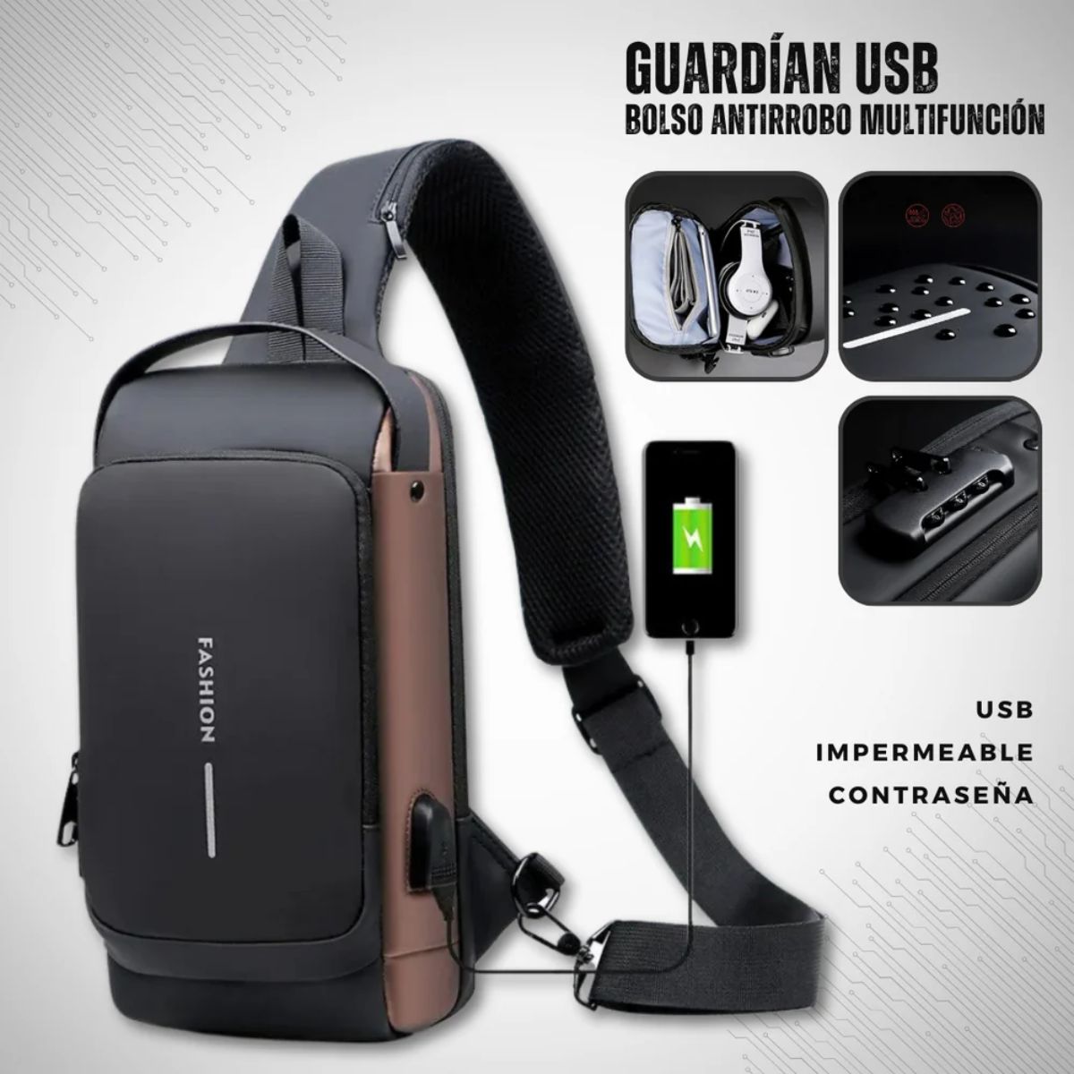 Incluye puerto USB para carga de bateria de equipos