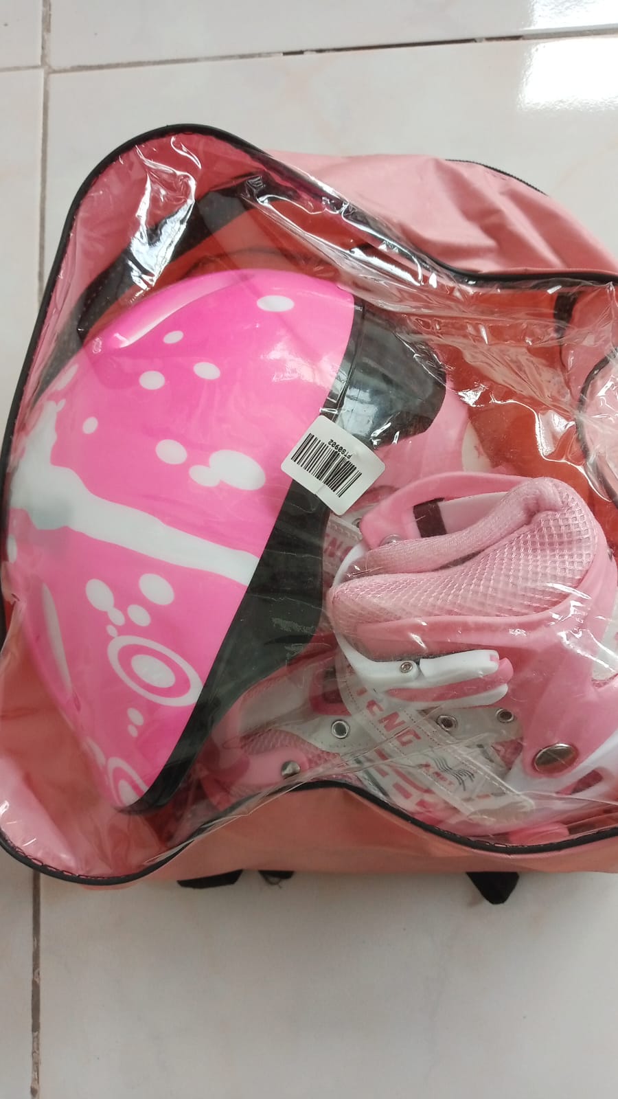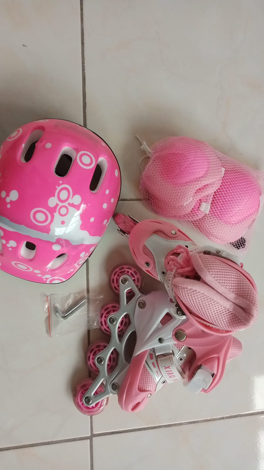PATINES rosados talla S, ajustables recomendados para niñas de 4 a 6 años, con maleta para guardarlos, casco de seguridad, rodilleras, protección para manos, elaborados de plástico reforzado, ruedas de poliuretano, provistos con luces de colores-