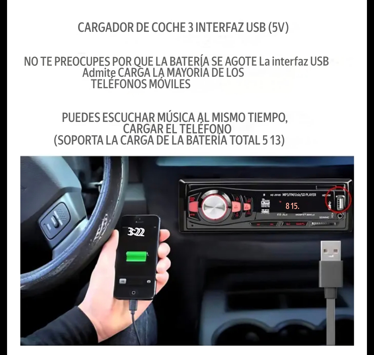 Reproductor de MP3 automático de 12V con audio estéreo