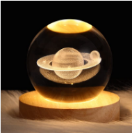 La lámpara SATURNO LED 8CM es un popular artículo decorativo que generalmente viene en formato de esfera de cristal con un grabado láser 3D del planeta Saturno, o como una lámpara impresa en 3D con la forma del planeta. Se alimenta por USB y a menudo incluye una base de madera o con iluminación LED integrada.