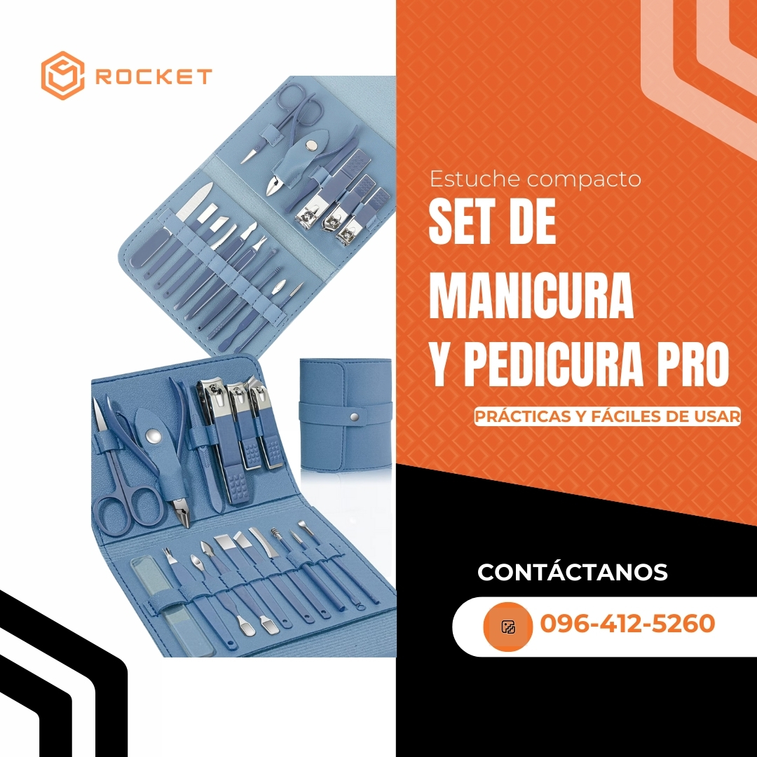 Kit completo de manicura y pedicura, ideal para mantener tus uñas prolijas en casa o llevarlo en la cartera o de viaje. Viene en un estuche compacto que protege y organiza todas las herramientas para que no se pierdan.