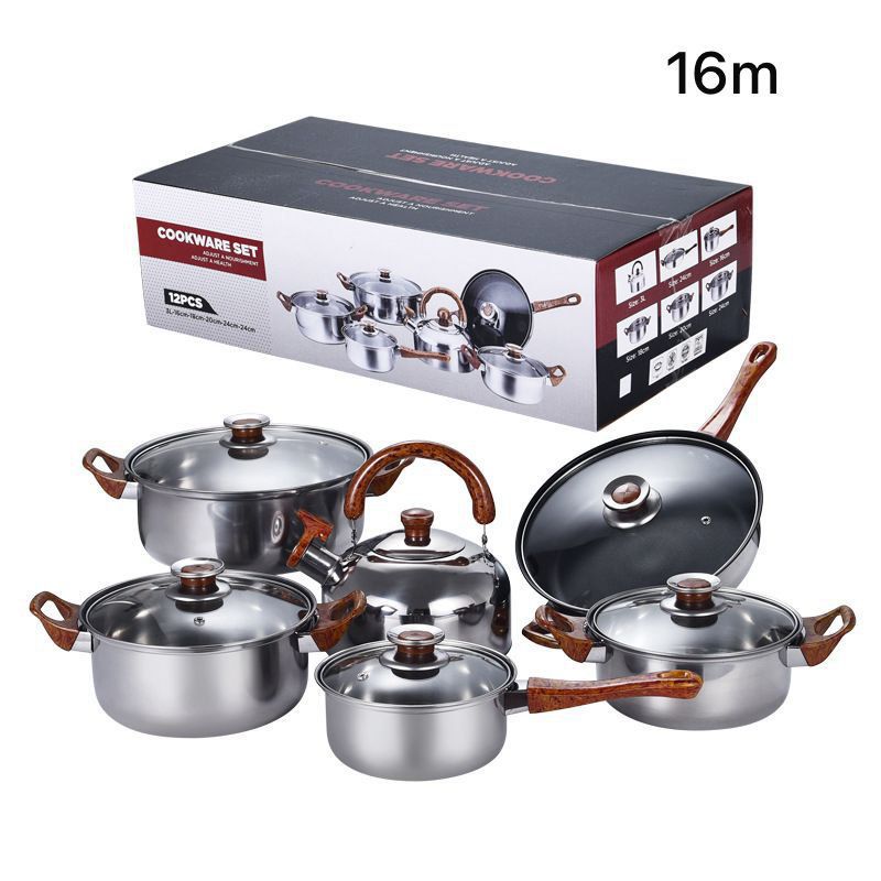Juego de utensilios de cocina de acero inoxidable, sartén antiadherente, olla de leche con tapa de vidrio, tetera, cacerola, cazuela, 6 piezas + 6 Tapas.