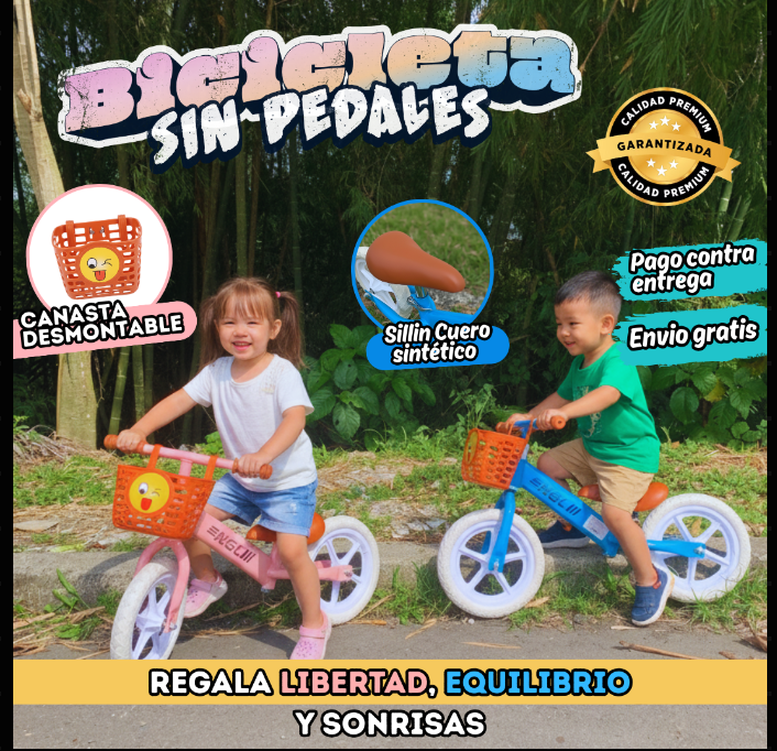 BICICLETAS PARA NIÑOS ENTRE 2 Y 3 AÑOS SIN PEDALES PARA MOTIVAR LA ESTABILIDAD DE LOS NIÑOS , LAS CUALES SON DE COLOR AZUL O ROSADO. SON DEMACIADO LIBIANAS PARA UN FACIL DESPLAZAMIENTO Y FACIL ACOMODACION PARA SU TRASPORTE